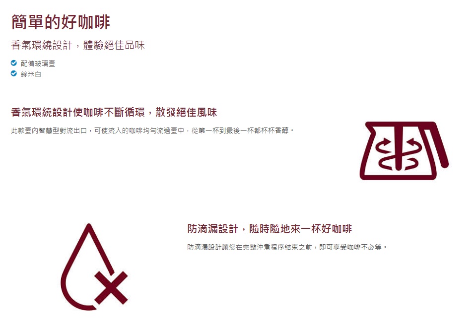 智能小巧保溫功能,智慧型水位指示,香氣環繞設計,體驗絕佳品味,輕巧設計又耐用、收納簡易、外型洗練的咖啡機,讓您享受好咖啡